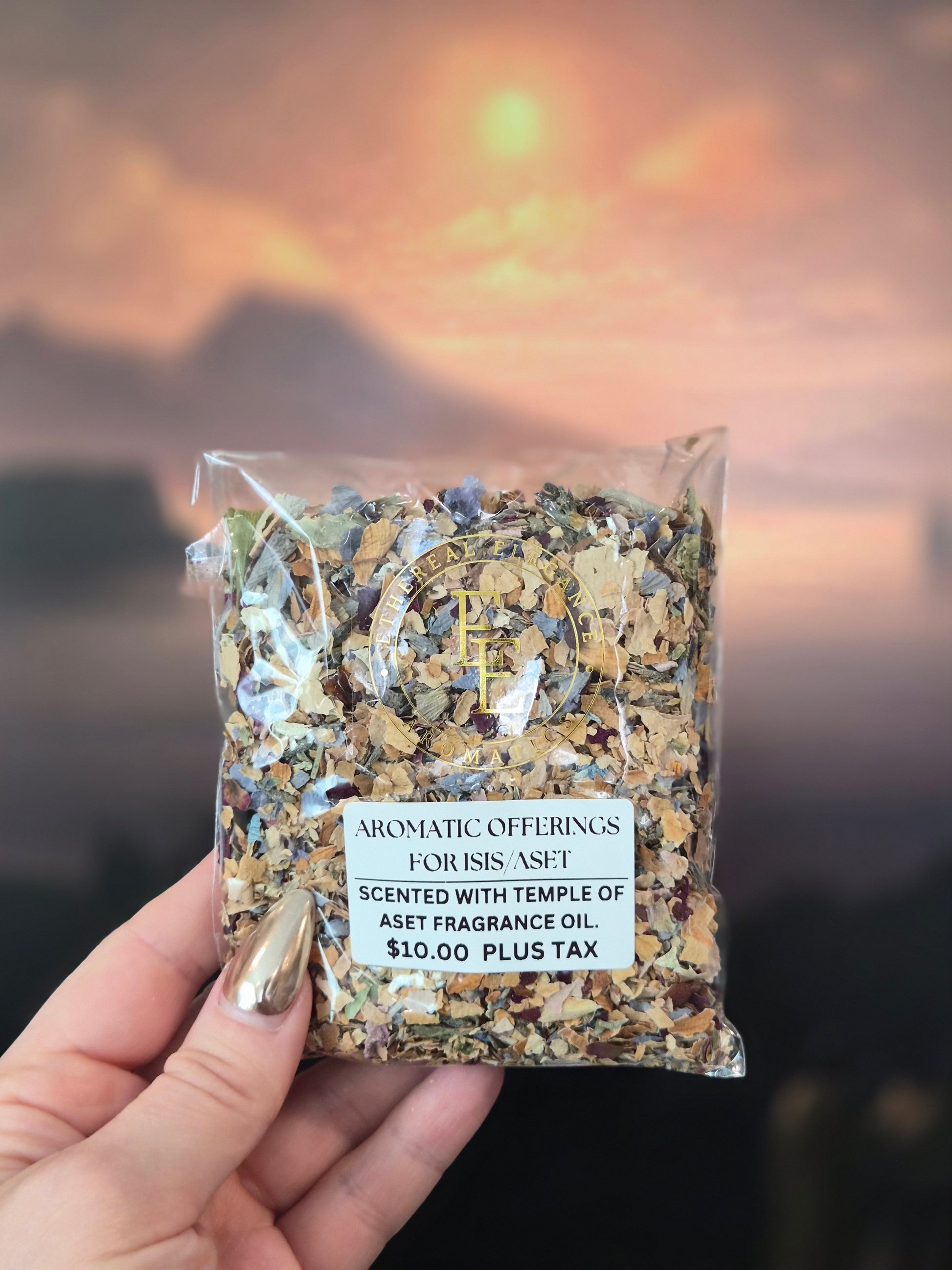 This premium botanical blend is specially formulated to honor the ancient Egyptian goddess of magic, healing, and motherhood. This sacred mixture invokes Isis's protective energy and transformative powers.